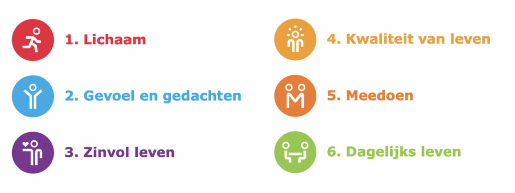 In de projecten binnen reablement wordt ook gebruik gemaakt van het model Positieve Gezondheid van het Institute for Positive Health. Loes: “ik ben het eens met hun uitgangspunt. Zij zeggen: mensen zijn niet hun aandoening. Toch focussen we doorgaans wel op die aandoening. Alle aandacht gaat uit naar hun klachten en gezondheidsproblemen, en hoe we die kunnen oplossen. Daar sluit ik me helemaal bij aan. De andere invalshoek die Positieve Gezondheid kiest, vind je ook terug bij reablement. Het accent ligt niet op ziekte en zorg, maar zet de mens centraal. Hoe je een aanpak ook noemt, zolang dat het uitgangspunt is, zijn we goed op weg naar de toekomst.”